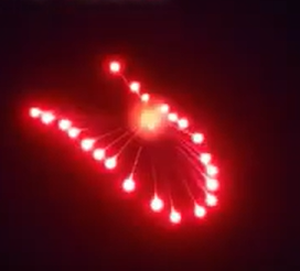 • Visual Effect: Crisp red comet that breaks into a symmetrical four-point starburst—great for rhythmic or geometric choreography
