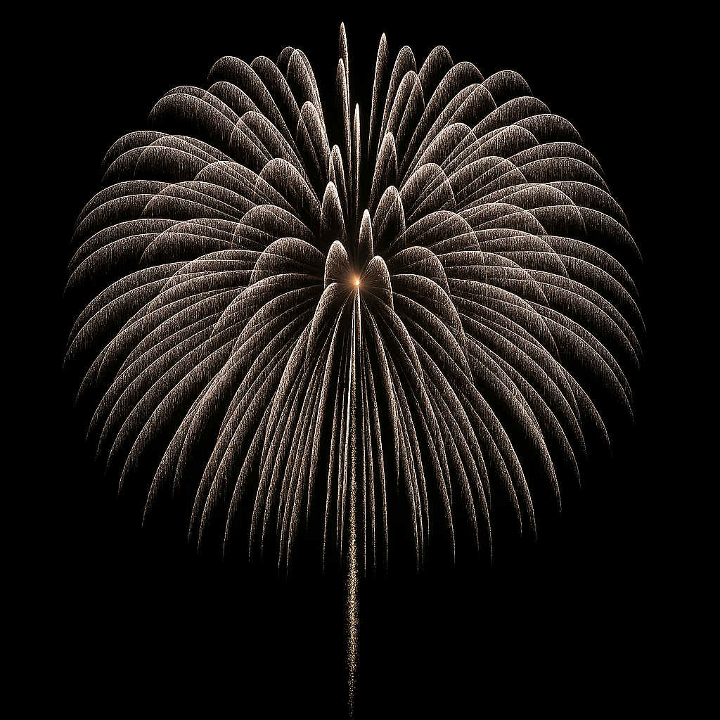 • Effect: Large round aerial burst resembling the cascading branches of a weeping willow, composed of brilliant white stars