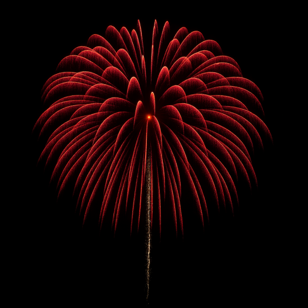 - Effect Style: A large, round aerial burst resembling the drooping branches of a weeping willow, rendered in deep red for dramatic visual impact